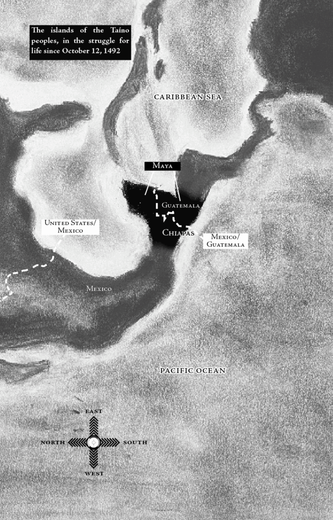It has been more than 500 years since Columbus and them first arrived in the Caribbean, or as the elders say, since Columbus and the other cannibals first arrived in the Caribbean spreading the wétiko virus, the contagious disease of selfishness.[1] It has been more than 500 years of struggles and still today, worlds exist in their ways from before and in their ways from after, ways that teach the You are my other me and I am your other you of the Maya peoples and the I am because we are of the Bantu peoples. More than 500 years of death and destruction, and worlds Indigenous to these lands are still in resistance, and not everyone has put down their weapons. The Zapatista Army for National Liberation (EZLN) in Chiapas is an important example of all these facts.