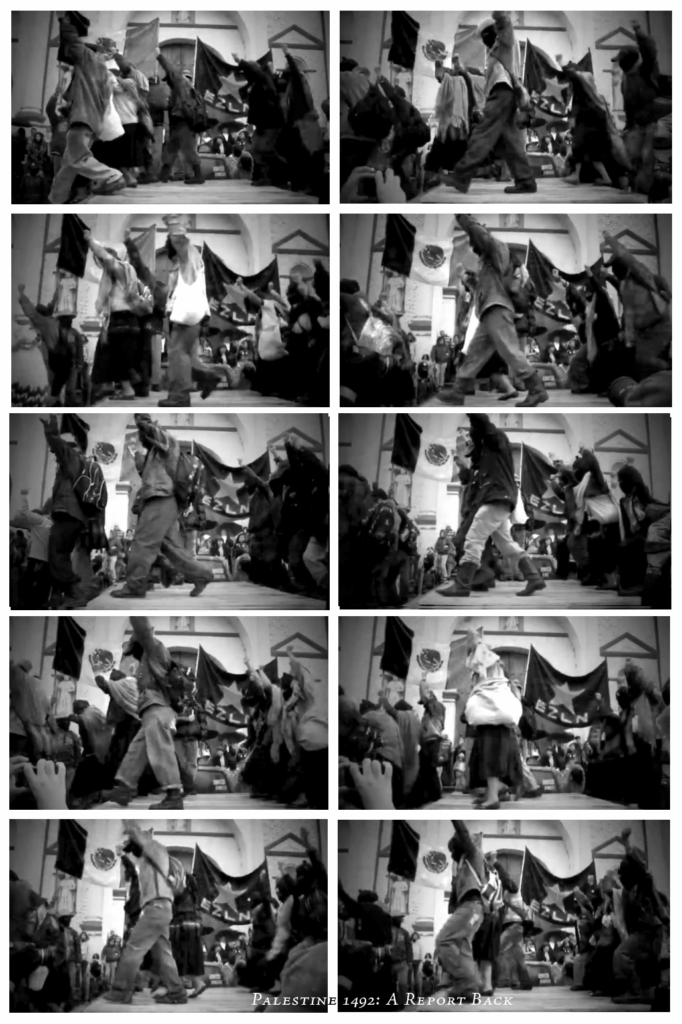 Palestinian compas say they don’t get to hear too much about the Zapatistas and have asked me to say more about them in this report back. I offer my interpretation of the Zapatistas here in the hope readers will listen directly to them rather than to me. The Zapatistas speak for themselves.[2] Parts of my offering might be more helpfully understood as witness testimony from someone raised by the world of Columbus and Them who can testify that world teaches Palestinians have never existed and that the Maya no longer exist. I can testify that worlds obsessed with “greatness,” the very definition of fascism, over-represent the stories of themselves as the stories of all humanity, as if empires, dynasties, kingdoms have ever been our only possibilities.[3]