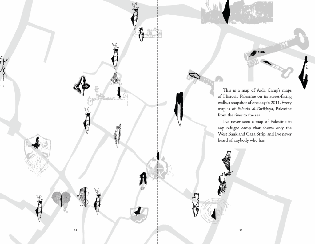 While Israel’s official maps show borders that express it is impossible for the refugees to return, those same maps communicate that home is only walking distance away. In Bethlehem’s Aida Refugee Camp, in the West Bank, I am learning to agree with a common Palestinian refrain: “Here, the map is useless.”