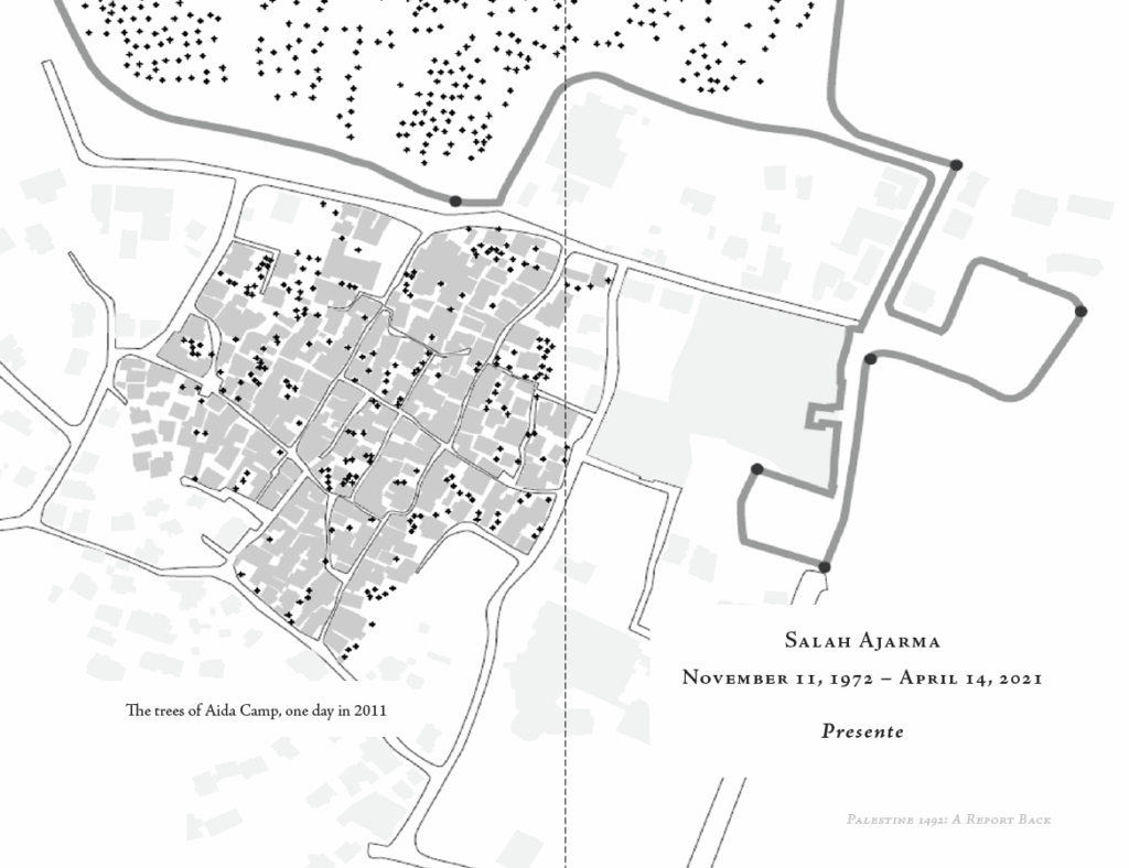 Placing my map of Aida Camp’s streets next to Nidal’s map of Aida Camp’s other streets, I was reminded of Amílcar Cabral’s appeal to the ones who make their lives at the cost of others. Either they betray the struggle of the below by preserving their privileges, or they can identify directly with the below and commit “suicide” as a class, by going below rather than above, by going below with the below so that the intifadas of the exterminated and displaced becomes an equally shared necessity.