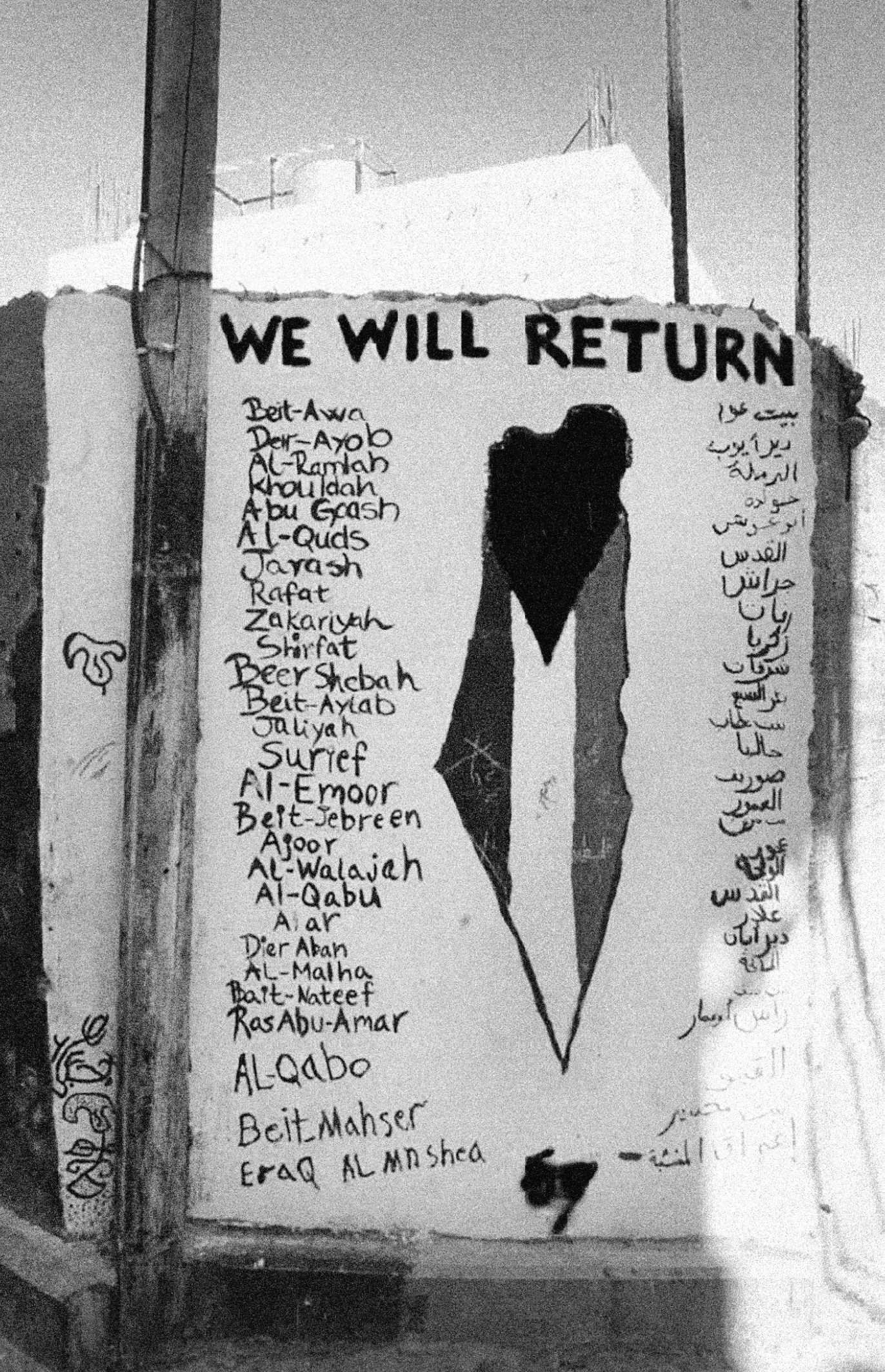 Still, it is from the refugees themselves that I learn the map is not always so useless. Every day, walking past the maps of Palestine on murals and graffiti all over the Camp, letting the world know in English WE WILL RETURN, and like that in all capital letters, I learn to agree. They are all maps of Historic Palestine, of Falestin al-Tarikhiya before 1948, before the United Nations’ partition, before the Peel Commission, before the British cut up Palestine into smaller pieces of private property to sell on the market, to speculate on the market, to displace Palestinians, today refugees, they say the oldest refugees, or at least among the oldest refugees who still know they’re refugees.