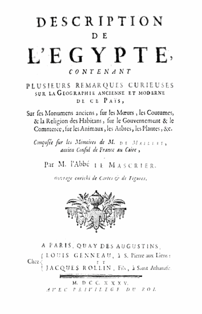 The frontispiece to the first edition of the Description de l’Égypte shows an obelisk, the inspiration for the Washington Monument built later in 1848.