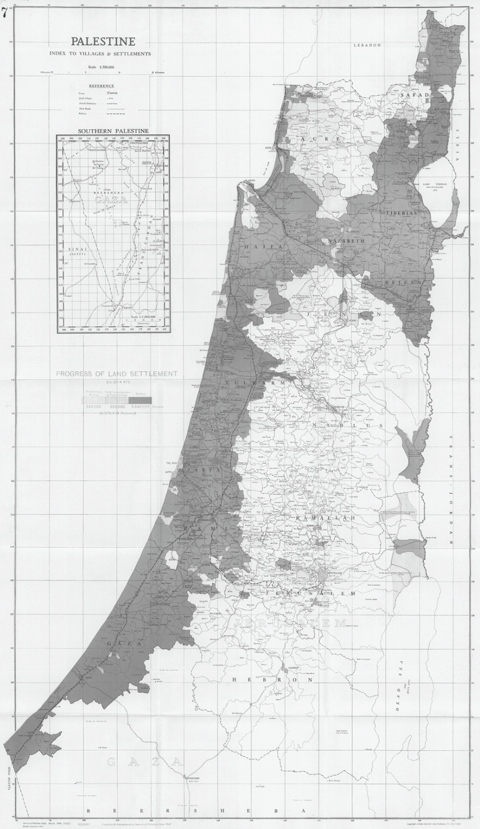 The amount and location of Palestine’s land surveyed by 1947 would correspond closely to the land the United Nations would allot to the proposed Jewish State in its Partition Plan for Palestine that same year.