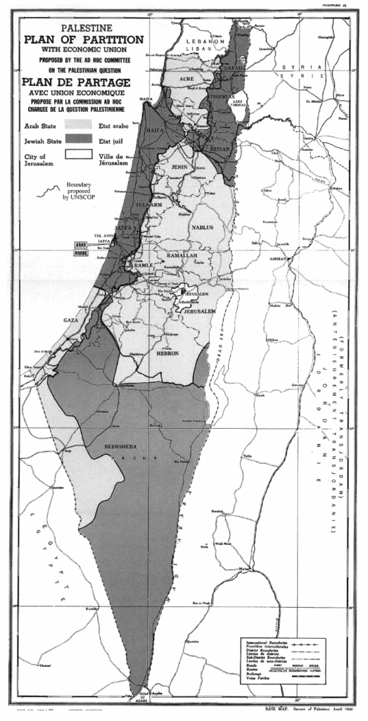 The newly created United Nations General Assembly had just approved the partition of Palestine into an Arab State and a Jewish State and a special “international” regime for Jerusalem and its surroundings, including Bethlehem. The plan implied the forcible transfer of Palestinians from the area allotted to a Jewish State.