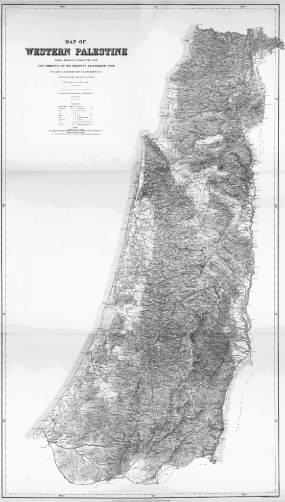 Under the cover of science and religion, British war engineers would survey Palestine between 1872–1877 and complete the Survey of Western Palestine below.